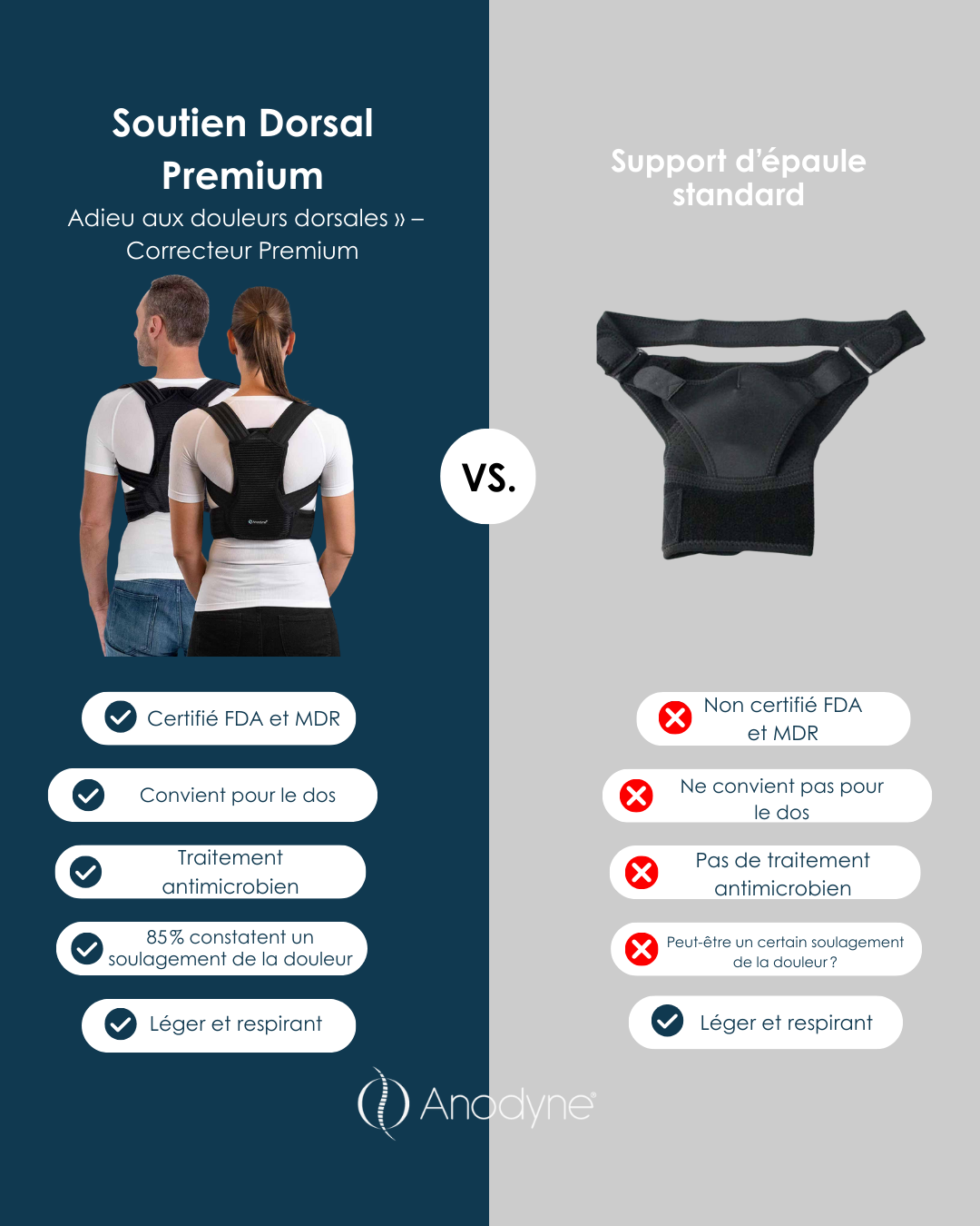 Soutien Dorsal Premium Vs Support d'épaule standard